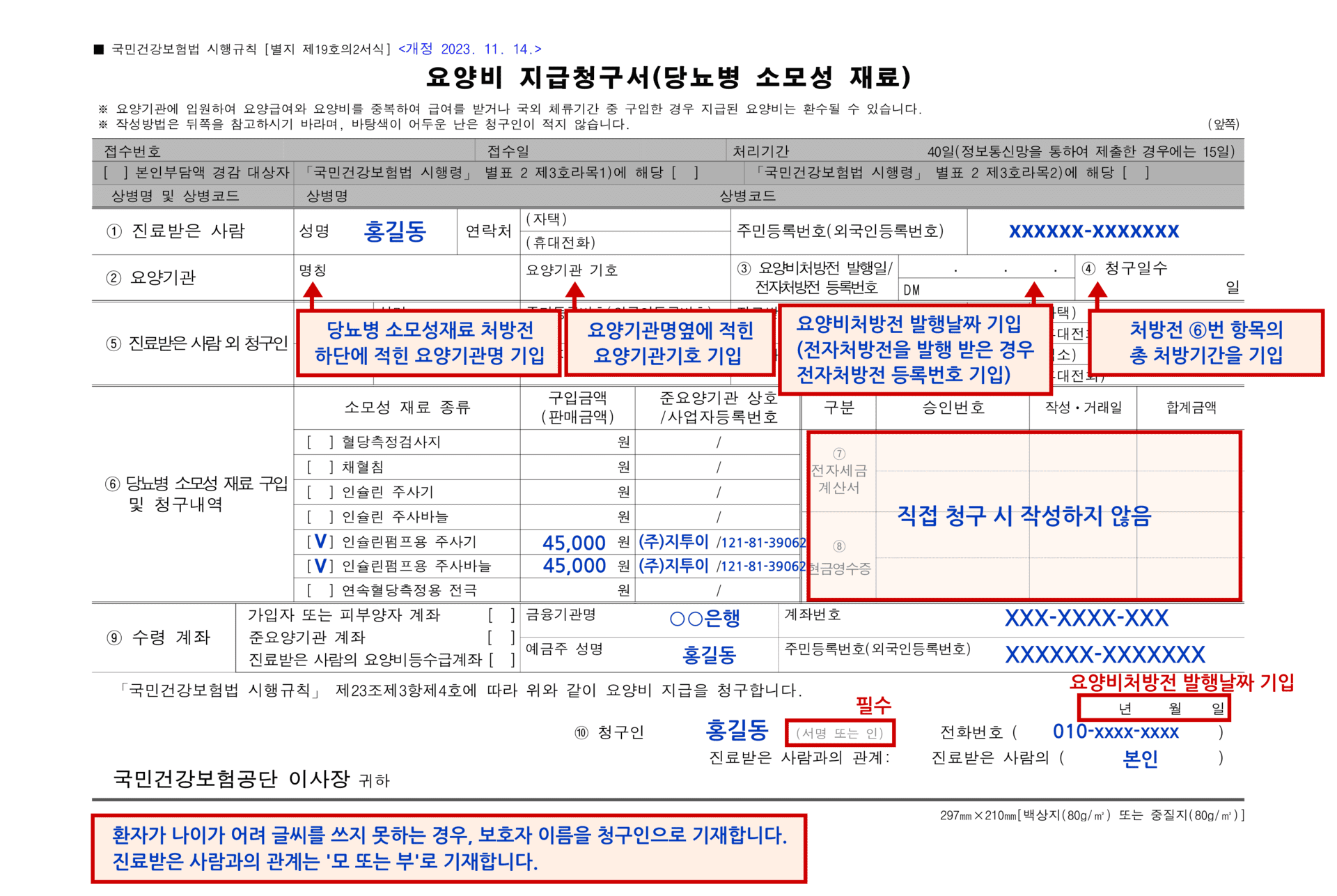 요양비 지급 청구서